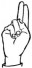На ћирилици написано РАНИСЛАВА КЛАРИЋ састоји се из 15 слова [?]. Исписано ћириличном једноручном азбуком за глувонеме: